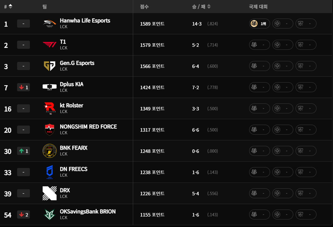 🔥 참가 팀 (총 10팀) LCK 순위